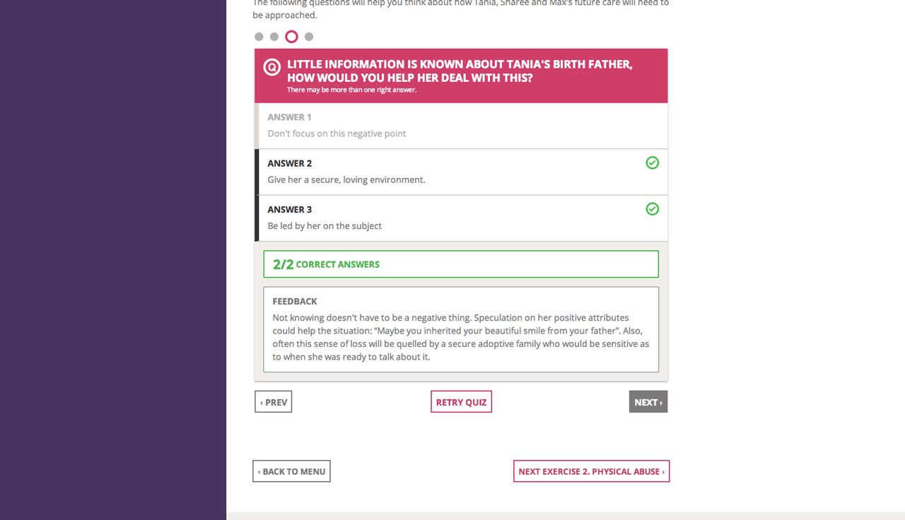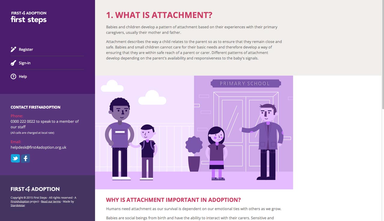 Starting out as a small myth-busting 'You Can Adopt' interactive guide, we went on to build a learning platform to sensitively help over 15,000 families start their adoption journey. Responsible for experience design and front-end build (HTML, CSS).