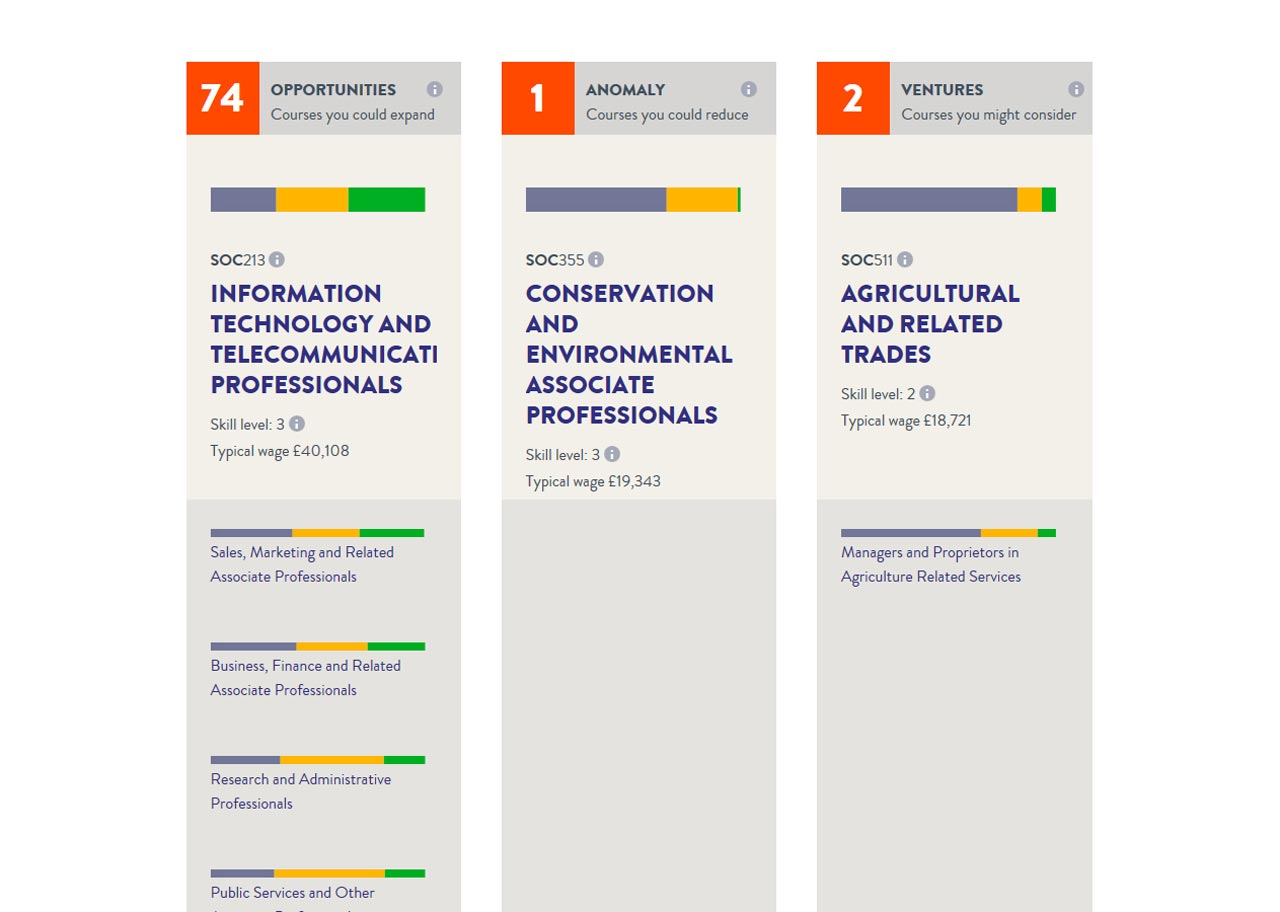 Used by various team members across education establishments, the aim was a simple, intuitive user interface. The clean and friendly style aided their efforts to effectively plan courses for their local area, keeping them viable and ultimately making their students more employable.
