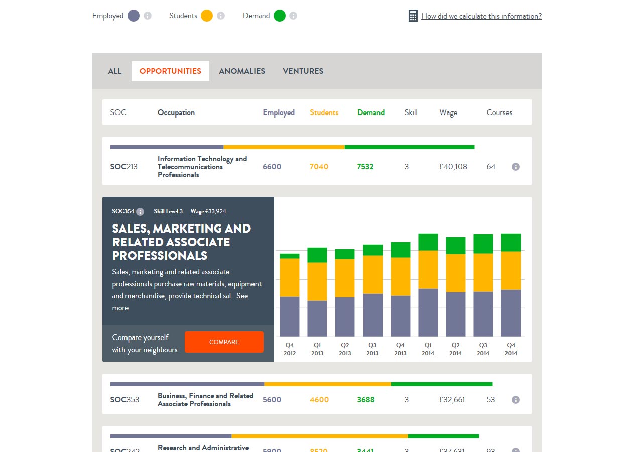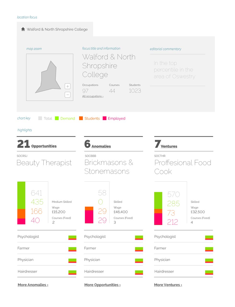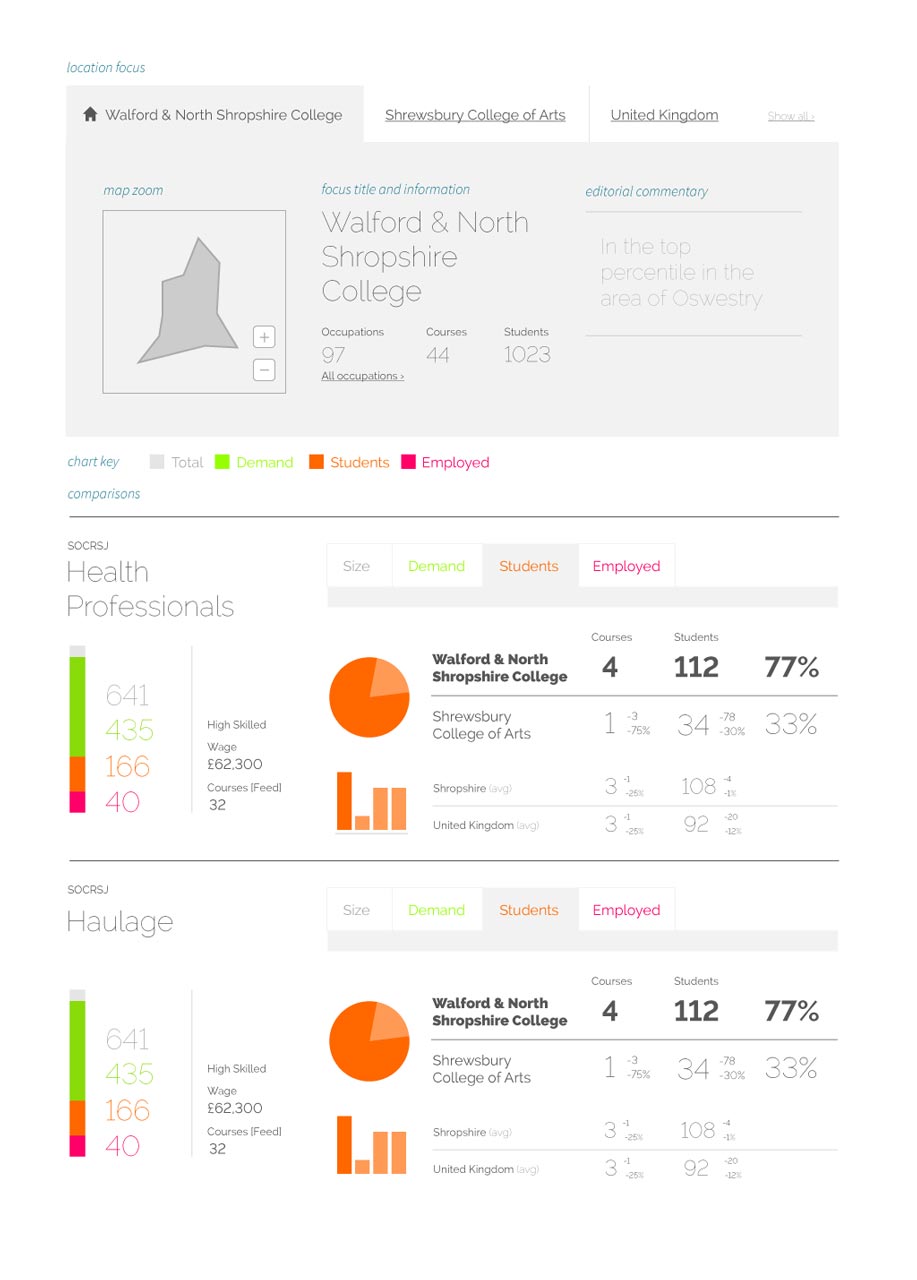 With over 17 million points of data across demographics, sectors and skills it was key to break out a simple story for those who would use the interface the most.