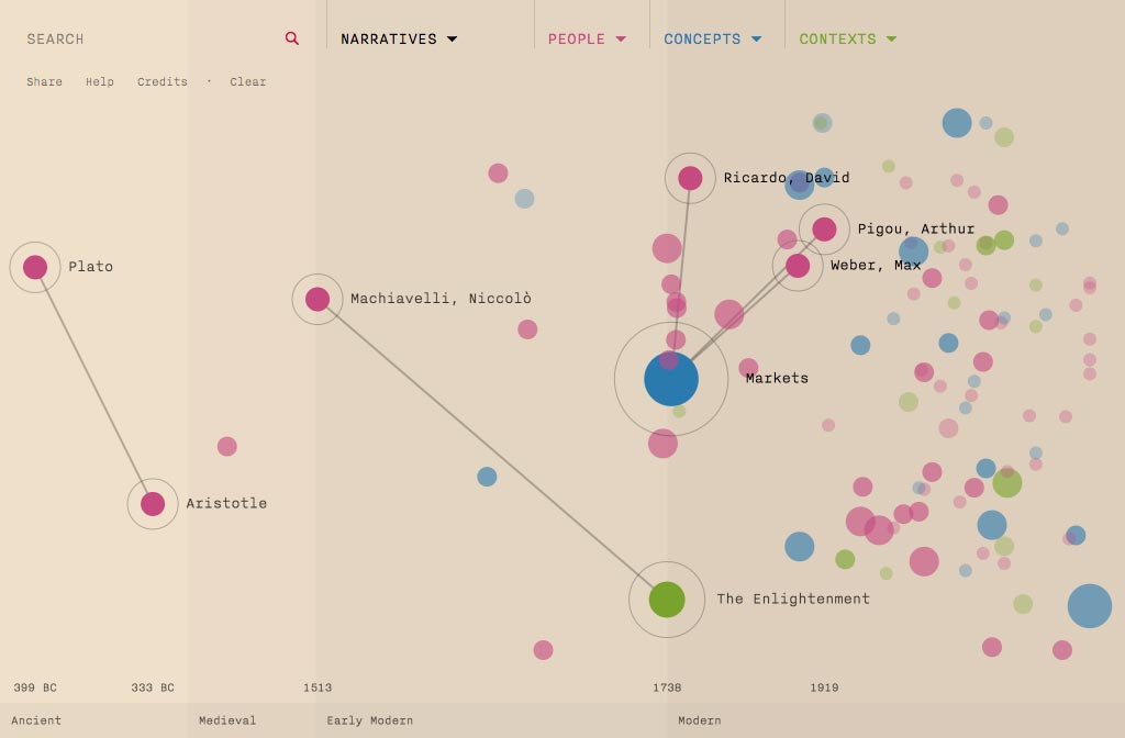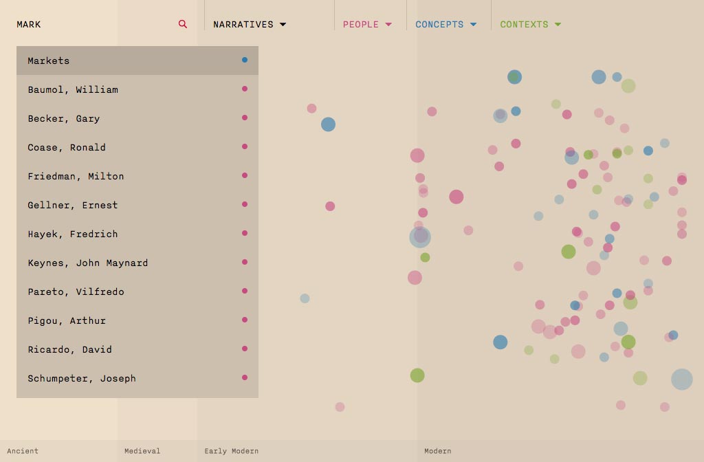 The task was to develop a data visualisation format that allowed academics to explore connections and learn about various subjects, on desktop or tablet alike. Responsible for concept, data and information design and front-end build (HTML, CSS).
